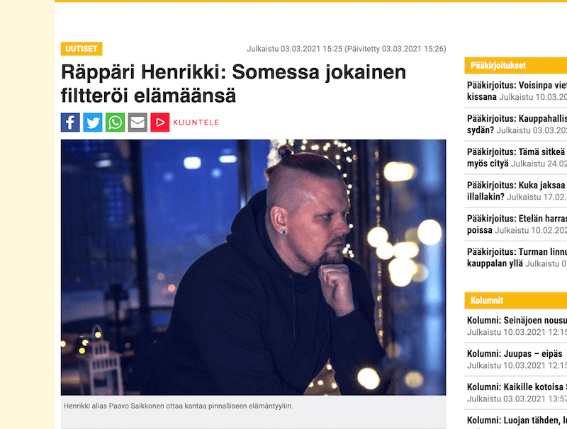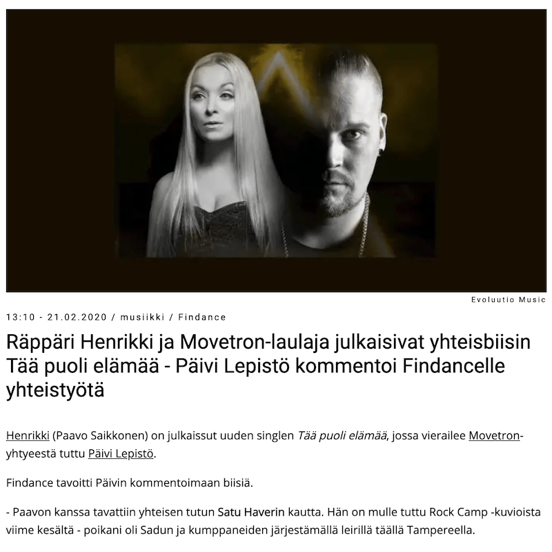 ”…Musiikki on ollu mulle aina tärkeä asia ja etenkin tunteita käsittelen voimakkaasti sen kautta. Päätös musiikin tekemisestä syntyi 2013 jouluna äidin kuoleman yhteydessä, mutta musan teko alkoi kuitenkin vasta 2018 vuoden alussa. Se oli jo pitkään ollut unelma, joka vain odotti toteutumistaan. Kirjoitan biisini omassa elämässä koettujen asioiden pohjalta, mun mielestä se on aidointa niin ja tuntuu jotenkin luontevalta ilmaista asioita musiikin kautta. Tarinaa on kerrottavana. Ja mikä tärkeintä, mä HALUAN ja USKALLAN mennä eteenpäin…” -Henrikki